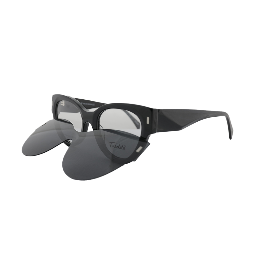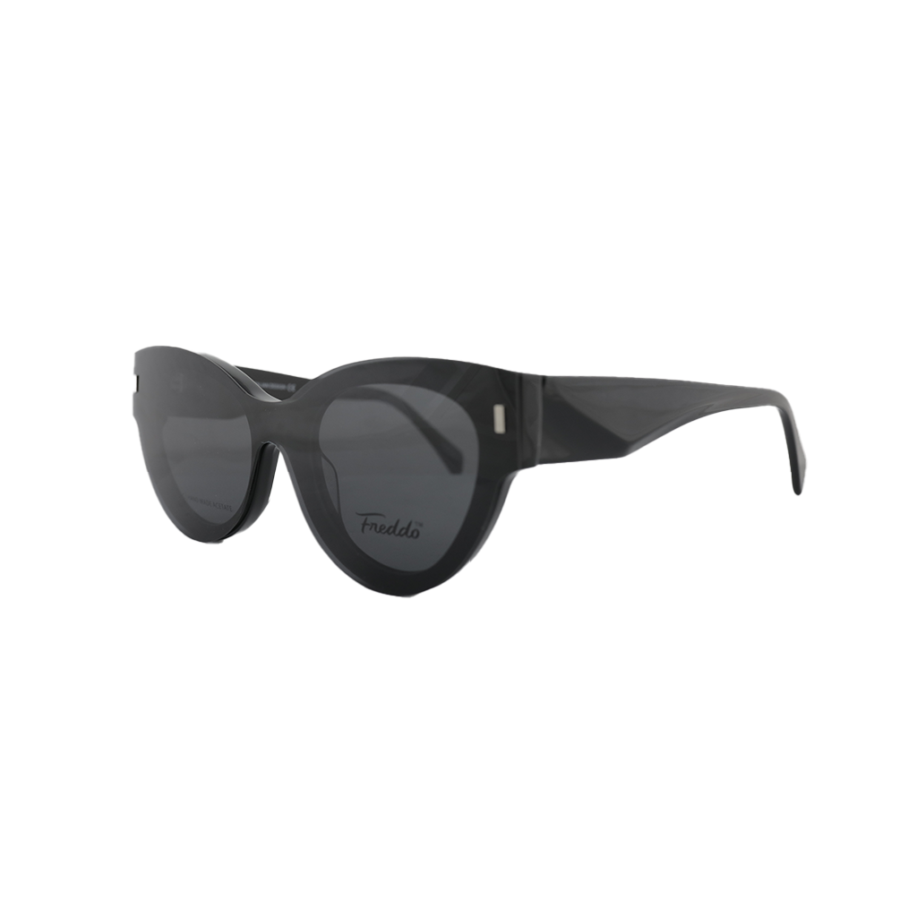 نظارات فريدو كليب أون ميستري F3011 بتصميم عين القطة للنساء، متوفرة باللونين الأسود والبني، تجمع بين الأناقة والعصرية. بمقاس 51، توفر هذه النظارات راحة مثالية وملاءمة أنيقة تناسب الاستخدام اليومي.