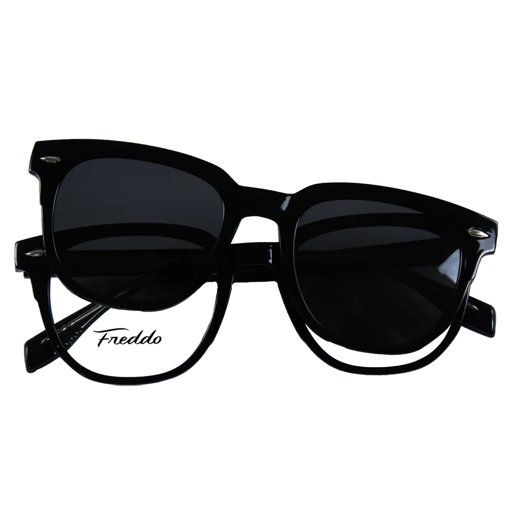فريدوو كليب اون ماستركليب كليب للرجال فى شكل مربع ومقاس 50 و الوان الاسود مع كليب بعدسات رمادى و البنى مع كليب بعدسات بنيه و الرمادى الشفاف مع كليب بعدسات رماديه لحاجه