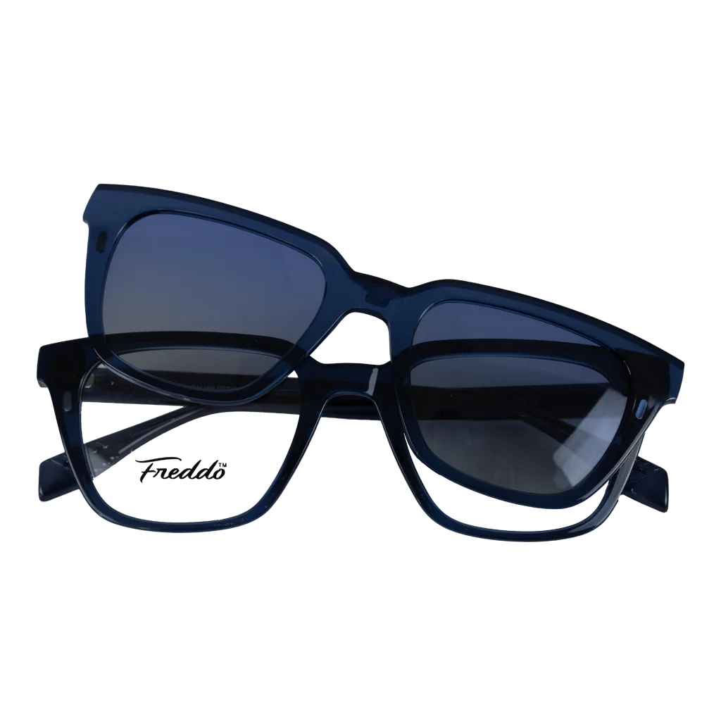 فريدوو كليب اون سكويرى كليب للرجال فى شكل مربع و الوان الاسود مع كليب بعدسات رمادى و الازرق مع كليب بعدسات زرقاء مدرجه و البنى مع كليب بعدسات خضراء و الرمادى الشفاف مع
