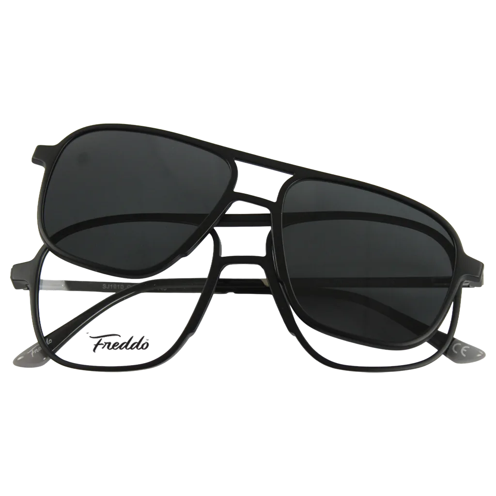 Freddo Clip ON masterclip for Mancome in Pilot design in size 54 in black color with black clip on lens , brown color with green clip on lens and blue color with gray clip on lens for every one’s every day glasses.