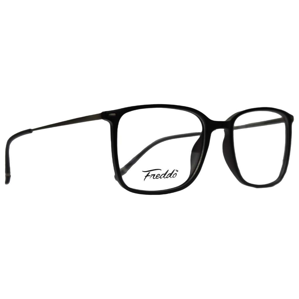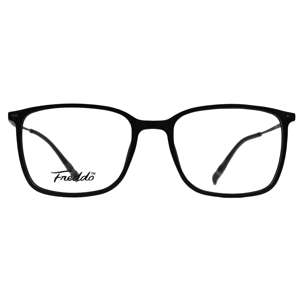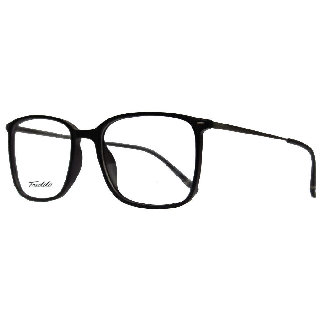 Freddo Squarelegant FB21 plastic eyeglasses for men feature a sleek rectangular design in durable plastic, available in classic black, bold blue, transparent and deep red. With a comfortable 53 size, they combine style and functionality for everyday wear.